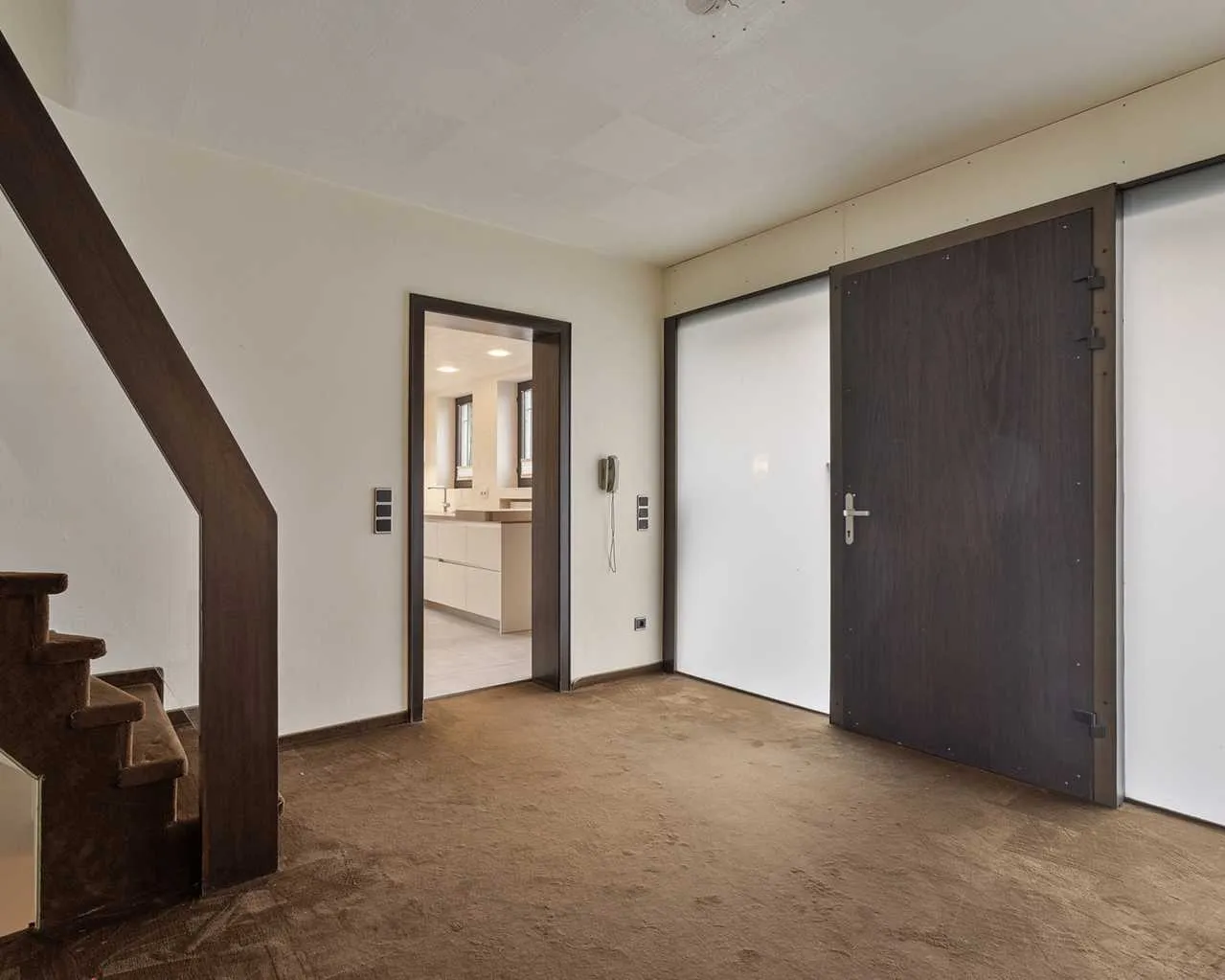 Böden: hochwertige braune Textilböden. In den Räumen im Dachgeschoss wurde der Farbton creme gewählt.
