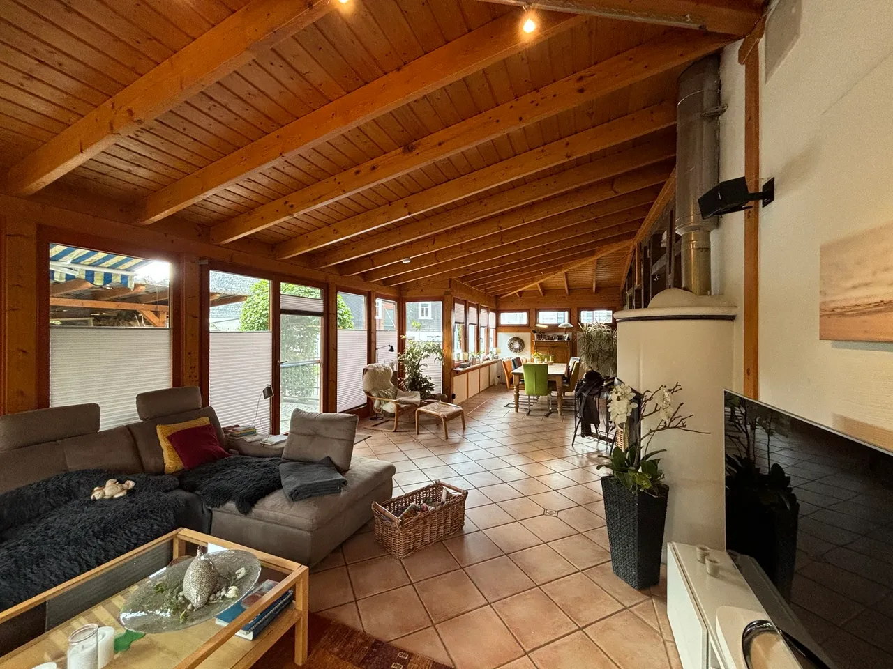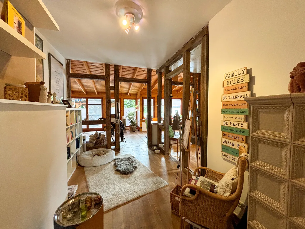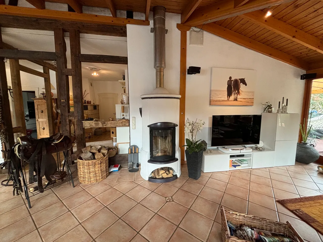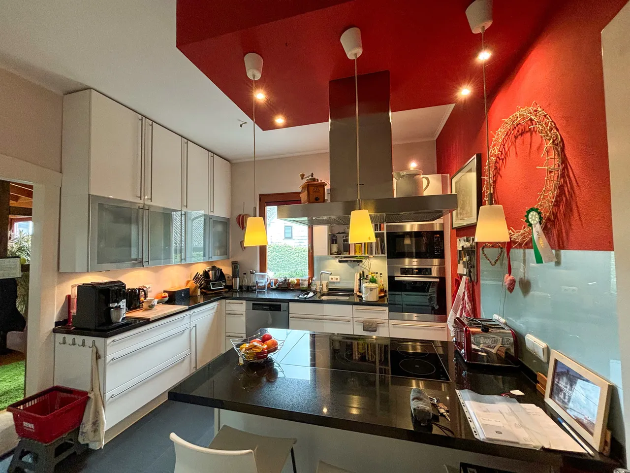 Dieses zauberhafte Fachwerkhaus bietet den perfekten Rückzugsort für alle, die eine Immobilie in einem überwiegend exzellenten Zustand und mit viel Liebe zum Detail suchen. Das Erdgeschoss des Hauses besticht durch seine großzügigen und lichtdurchfluteten Räume. Im Anbau befindet sich ein gemütlicher Wintergarten, der dank der bodentiefen Fenster den Blick in den traumhaften Garten freigibt. Hier sorgt eine Fußbodenheizung auch an kalten Tagen für wohlige Wärme. Das luxuriöse Badezimmer im Erdgeschoss lässt keine Wünsche offen: Eine bodentiefe Regendusche, eine Badewanne und hochwertige Materialien bieten Wellness-Feeling pur. Der offene Wohnbereich wird durch einen stilvollen Kamin komplettiert, der in den Wintermonaten für behagliche Stunden sorgt. Die moderne Küche ist das Herzstück des Hauses. Ausgestattet mit einer großzügigen Kochinsel und einer Theke, lädt sie zu geselligen Kochabenden und kulinarischen Highlights ein. Das Obergeschoss befindet sich in einem gepflegten Zustand, bedarf jedoch einer Renovierung, um das Potenzial des Hauses voll auszuschöpfen. Der geräumige Dachboden bietet weiteres Ausbaupotenzial, um zusätzlichen Wohnraum zu schaffen – ideal für ein weiteres Schlafzimmer, ein Arbeitszimmer oder einen Hobbyraum.