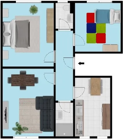 Beim Betreten der Wohnung gelangen Sie in die zentrale Diele, von der aus alle Räume zugänglich sind. Auf der linken Seite befindet sich die geräumige Küche, die ausreichend Platz für eine kleine Frühstücksecke bietet. Direkt daneben liegt das helle Tageslichtbad, das mit einer Dusche ausgestattet ist. Zwei großzügige Zimmer ideal als Wohn- und Schlafzimmer nutzbar befinden sich gegenüber dem Wohnungseingang. Große Fenster sorgen hier für eine angenehme Helligkeit und ein freundliches Wohnambiente. Rechterhand der Diele befinden sich das separate WC sowie ein weiteres Zimmer, das sich optimal als Arbeits- oder Kinderzimmer eignet.