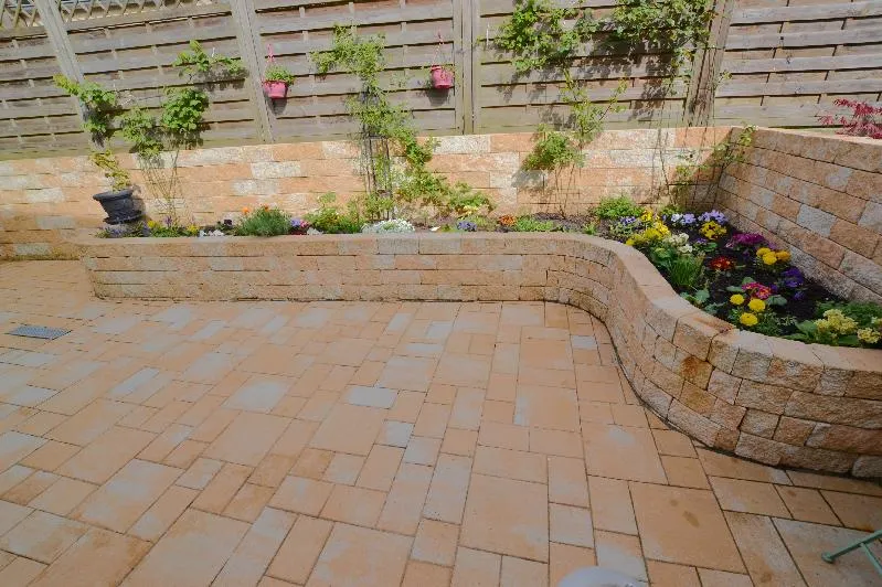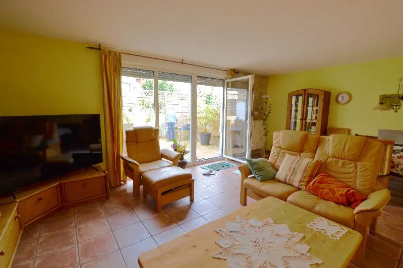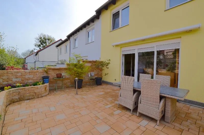 Die Immobilie verfügt über eine Garage, über die man auch zum Garten gelangen kann sowie eine große Terrasse. Der Garten selbst ist relativ klein aber fein.