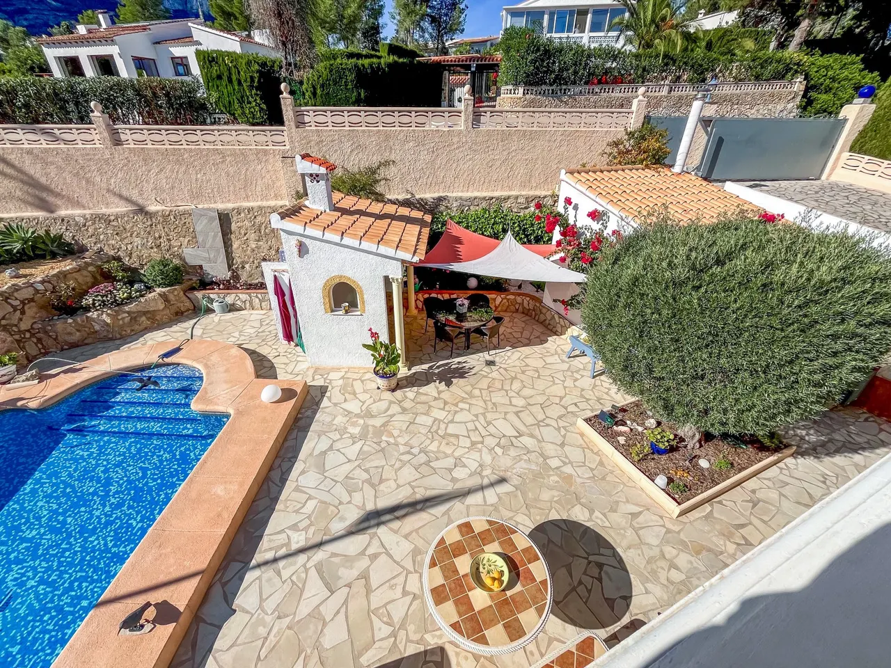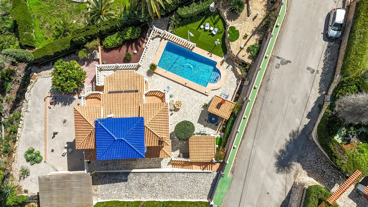 Wir bieten Ihnen diese sonnige Villa am Fuße des Montgo in Dénia an. 1999/2000 wurde diese elegante zweigeschossige Villa mit einer Wohnfläche von ca. 148 Qm auf einem sonnigen, ruhig gelegenen Grundstück von 998 Qm erbaut.