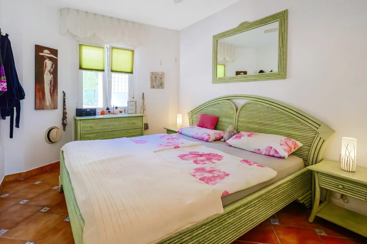 Aufgrund der gehobenen Ausstattung mit ölbetriebener Fußbodenheizung im Erdgeschoss, elektrischer Fußbodenheizung im Bad des Obergeschosses, isolierverglasten weiß beschichteten Aluminiumfenstern mit Rollläden und Fliegengittern, Alarmanlage, Solar-Lüftungssystem ist diese Villa bestens geeignet um das mediterrane Klima ganzjährig zu genießen.