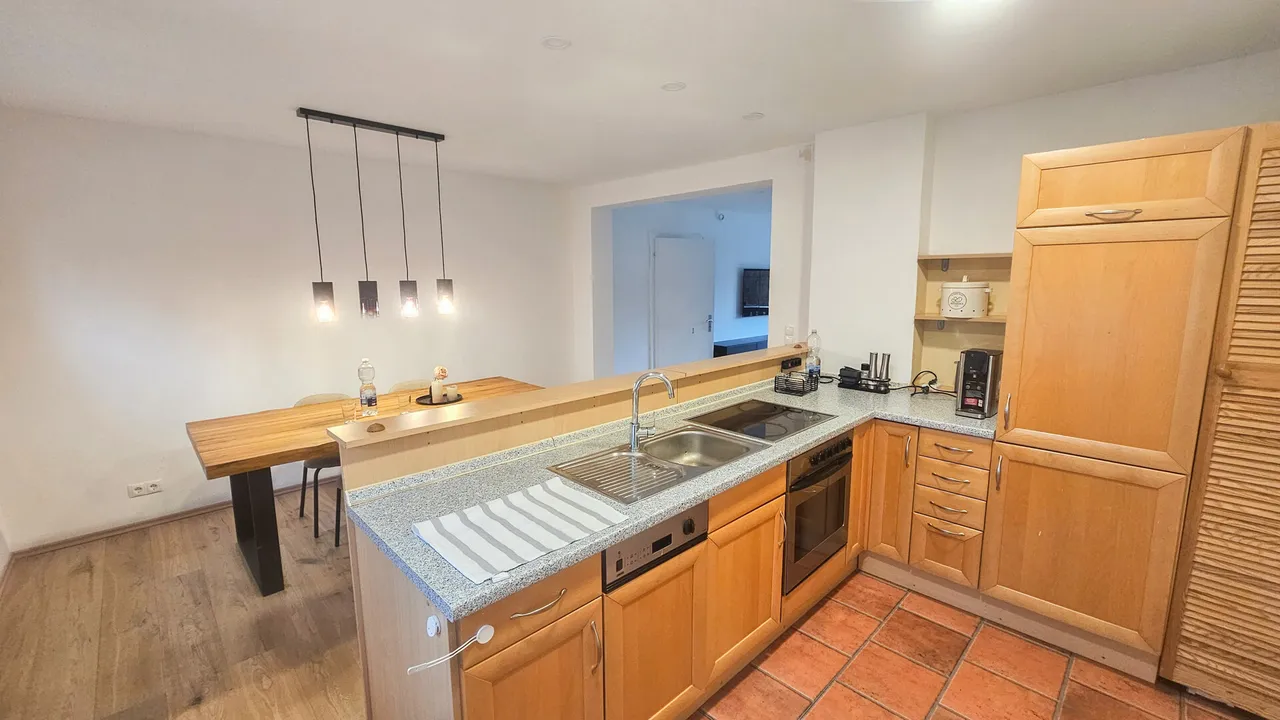 Der Garten überzeugt durch seine vielfältigen Bereiche, die eine perfekte Kombination aus Rückzug und Nutzungsmöglichkeiten bieten. Ob entspanntes Verweilen im Grünen, Spielen für die Kinder oder gemütliche Abende mit Freunden. Die große Terrasse ist mit einer kleinen Outdoorküche ausgestattet, die insbesondere in den Sommermonaten zu geselligen Koch- und Grillmomenten einlädt.