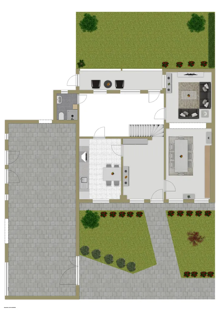 Schon beim Betreten werden Sie von einem großzügigen Eingangsbereich empfangen, von dem Sie direkt in den offenen Wohn- und Essbereich mit Kamin gelangen – der Mittelpunkt des Hauses, der Behaglichkeit und Wärme ausstrahlt. Von hier aus führt der Weg hinaus auf die Terrasse, in den Garten sowie in den geschützten Innenhof. Zusätzlich bietet das Erdgeschoss ein Badezimmer mit Dusche sowie einen praktischen Waschraum.