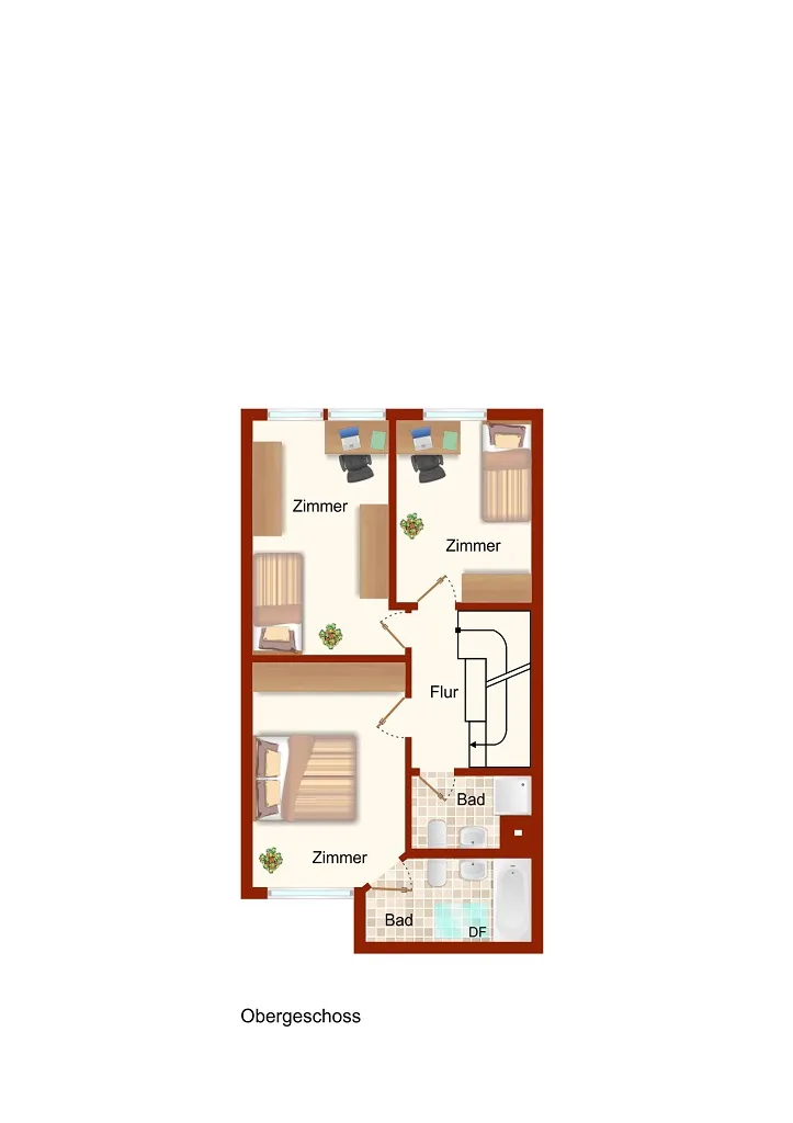 Im Erdgeschoss erwartet Sie eine schöne Eingangsdiele mit WC und kleinem Abstellraum, ein großzügiger Wohn-/Essbereich mit offener Küche sowie Zugang zum Südgarten. Im OG befinden sich ein Elternschlafzimmer nebst eigenem Wannenbad sowie 2 Kinderzimmer mit Duschbad. Im DG finden Sie ein schönes Studio mit Duschbad. Der Vollkeller hat einen Ausgang zum Garten und bietet viel Platz.