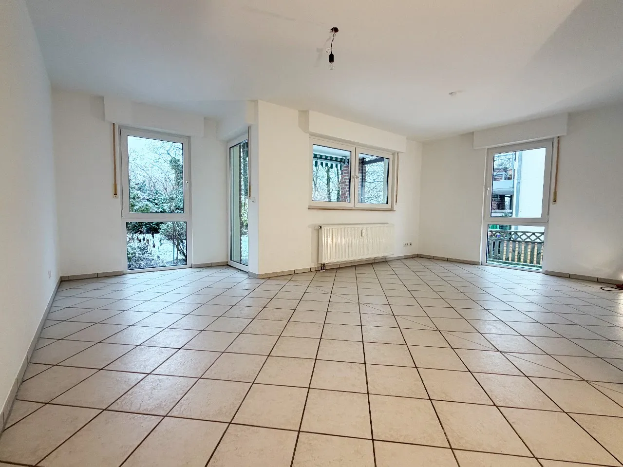 Die Wohnung verfügt über drei gut geschnittene Zimmer mit vielseitigen Nutzungsmöglichkeiten. Sämtliche Wohnräume sind durchgehend hell gefliest, was für ein freundliches Erscheinungsbild sowie einen geringen Pflegeaufwand sorgt.