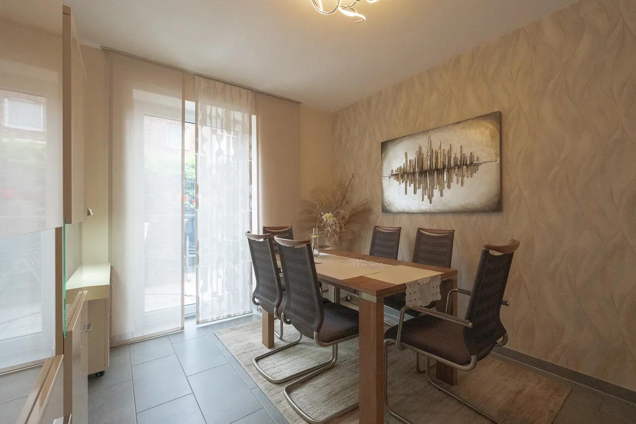 Ein zusätzliches Highlight ist die zweite Terrasse hinter der Garage – ein geschützter, sonniger Rückzugsort. Die ruhige Lage im gewachsenen Wohnumfeld von Wassenberg-Myhl und die gute Anbindung an Einkaufsmöglichkeiten, Natur und Infrastruktur runden das Gesamtbild ab.