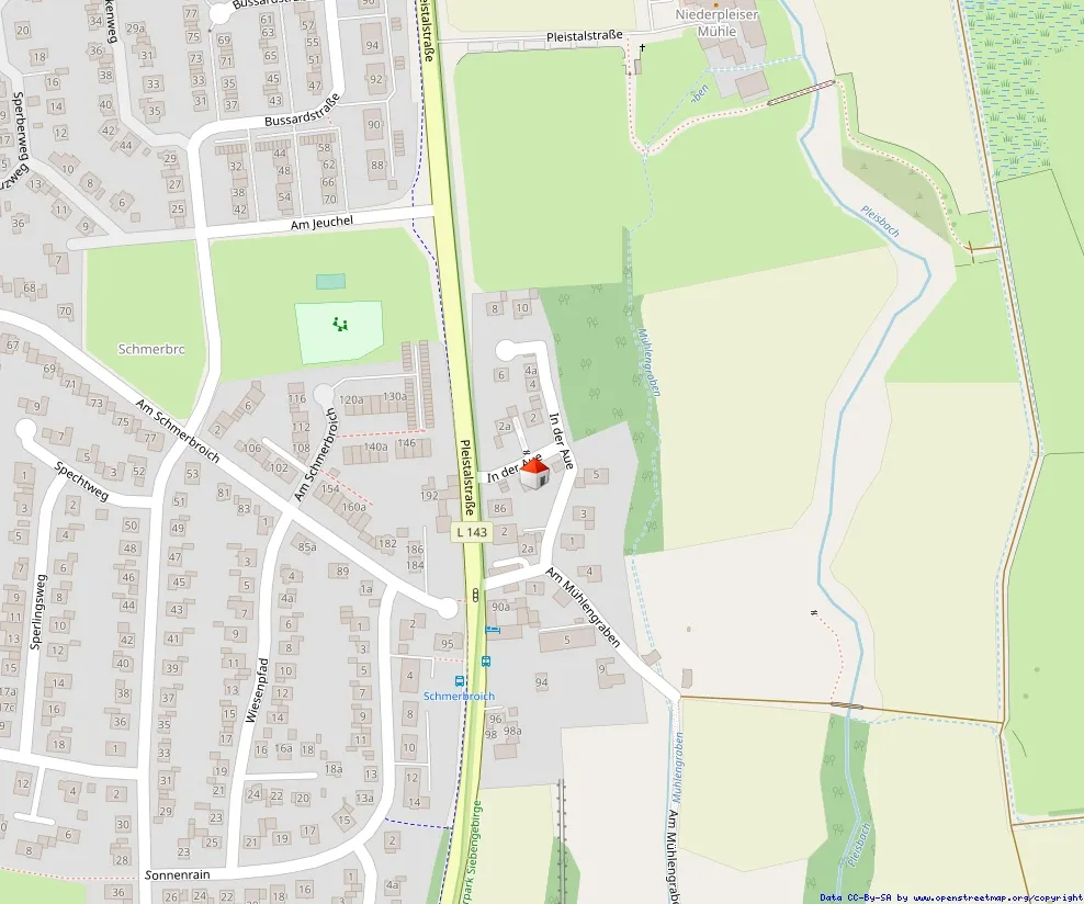 Die Immobilie liegt in der Straße „In der Aue“ unmittelbar am Rande des Landschaftsschutzgebiets Pleisbachaue und verbindet somit ruhiges Wohnen mit einer hohen Lebensqualität im Grünen. Spazier- und Radwege in der Umgebung laden zu vielfältigen Freizeitaktivitäten in der Natur ein.