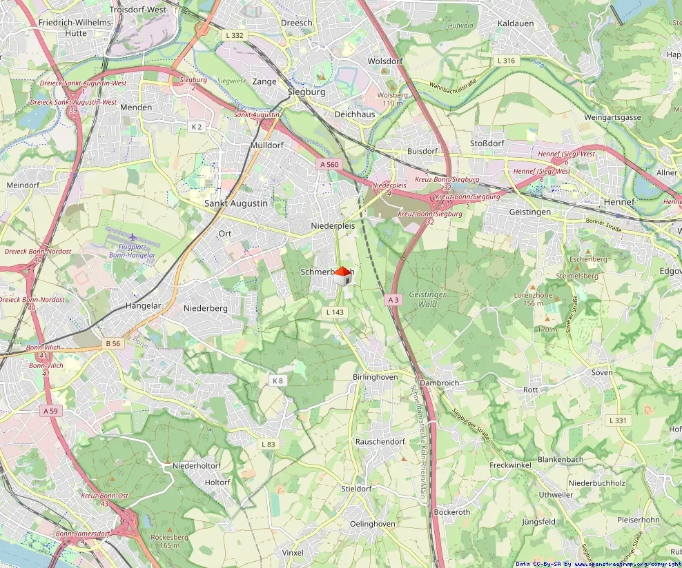 Die Wohnung befindet sich in ruhiger und naturnaher Lage im Sankt Augustiner Ortsteil Schmerbroich, der zum Stadtbezirk Niederpleis gehört. Niederpleis ist einer der größten Stadtteile von Sankt Augustin im Rhein-Sieg-Kreis in Nordrhein-Westfalen und bietet eine sehr gute Infrastruktur sowie eine angenehme Wohnqualität.