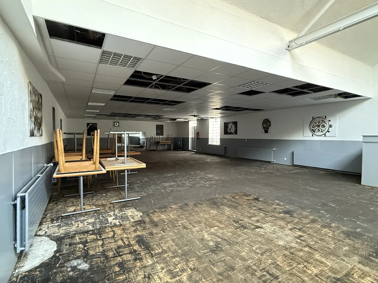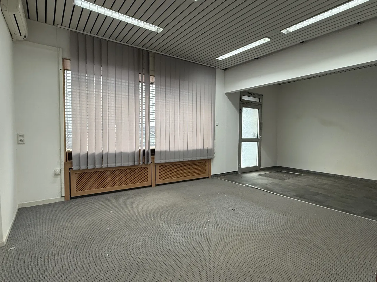 Im Erdgeschoss befindet sich zur Straßenseite hin ein ansprechendes Ladenlokal mit großer Schaufensterfront und einem angeschlossenen Büroraum ideal für Einzelhandel, Dienstleistung oder Büro. Im Flügelanbau liegt ein separater Lagerraum. Die ursprünglich offene Hoffläche wurde überbaut und wird aktuell ebenfalls als Lager genutzt; hier besteht eine Rückbauverpflichtung.