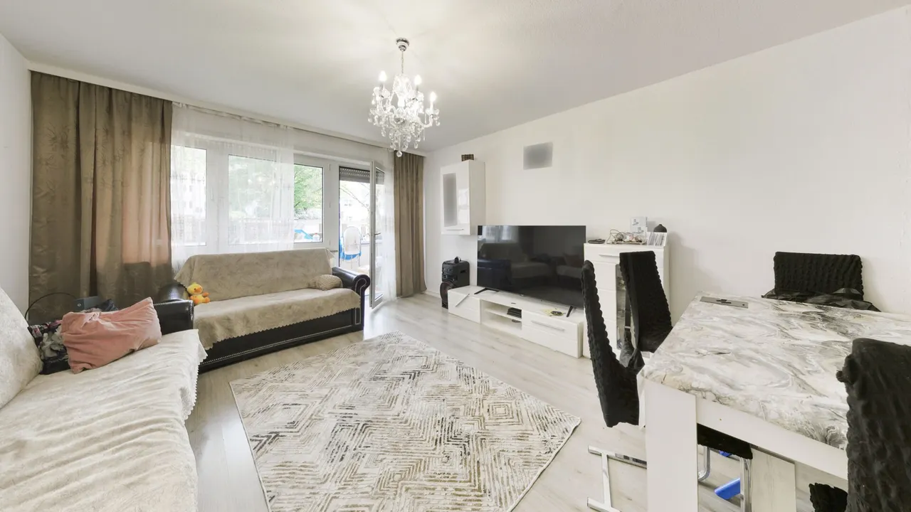 Herzstück der Wohnung ist das großzügige, lichtverwöhnte Wohnzimmer, das ausreichend Platz für eine gemütliche Sofalandschaft sowie einen separaten Essbereich bietet. Von hier aus haben Sie direkten Zugang zum sonnigen Südbalkon – ein idealer Rückzugsort, um entspannte Stunden im Freien zu genießen. Die intelligente Raumaufteilung umfasst zudem zwei gut geschnittene Schlafzimmer: Das Hauptschlafzimmer bietet viel Raum für ein großes Doppelbett und Schrankflächen, während das zweite Zimmer flexibel als Kinderzimmer, Home-Office oder Gästezimmer genutzt werden kann.