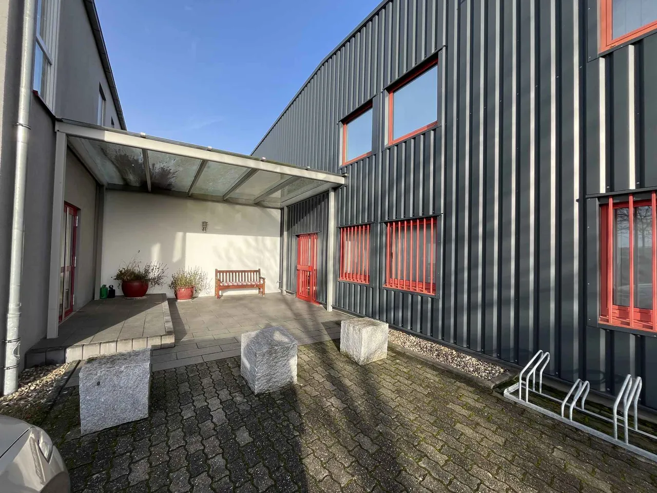 An die Gewerbehalle grenzt ein ca. 220 m² großes, modernes Verwaltungsgebäude mit Keller an, welches ebenfalls angemietet werden könnte!