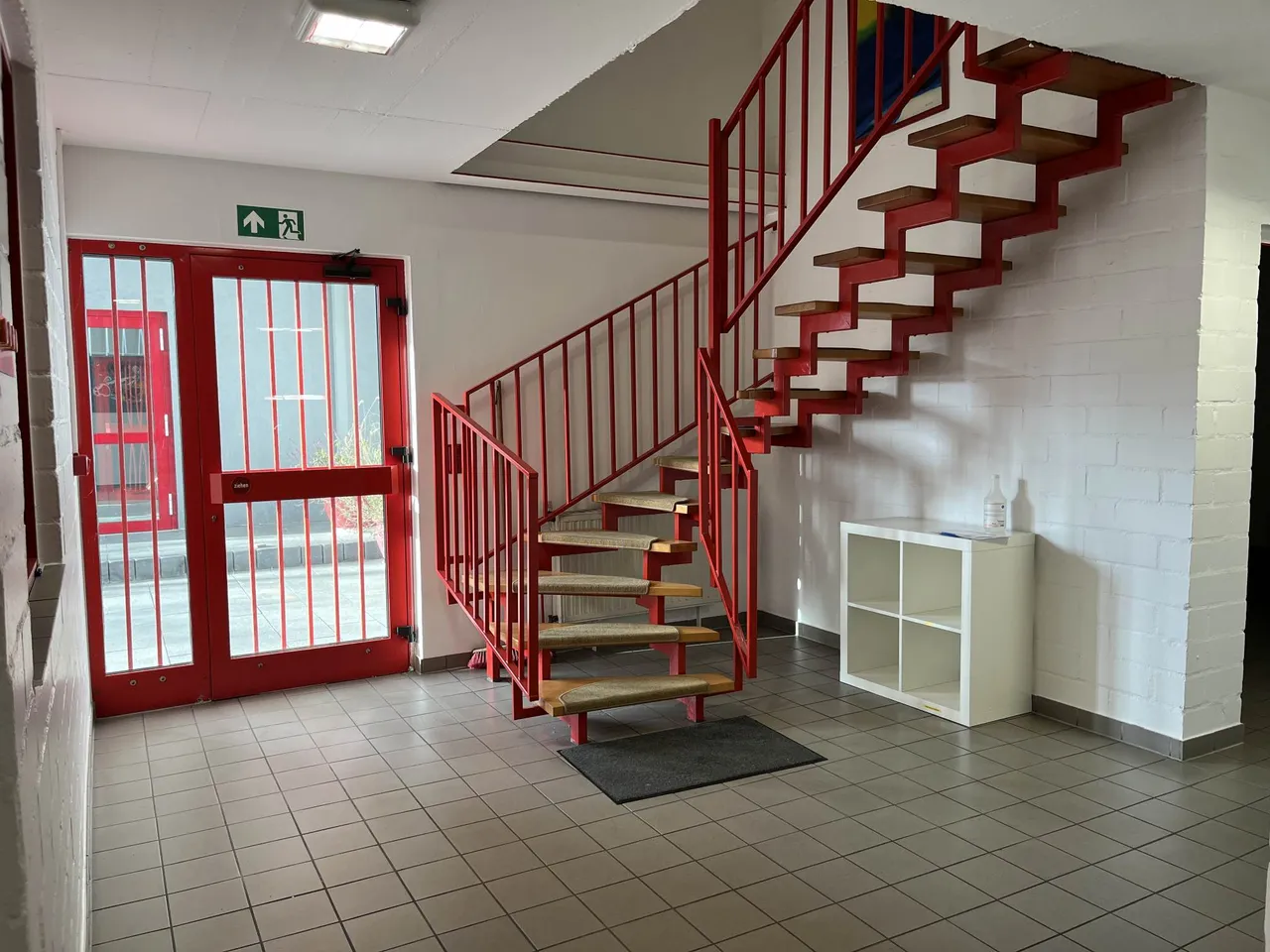 Im vorderen Bereich der ursprünglich 1991 errichteten Gewerbehalle I befindet sich im EG und OG der Büro- und Sozialtrakt mit einer Nutzfläche von ca. 226 m². Im EG liegt der Eingangsbereich mit Treppenaufgang, zwei große Büros rechts des Eingangs sowie getrennte Toiletten, Duschräume und ein großer Aufenthaltsraum mit eingebauter Küche zur linken. Im Obergeschoss stehen insgesamt 4 Büroräume mit Größen zwischen 17 und 36 m² sowie ein WC zur Verfügung.