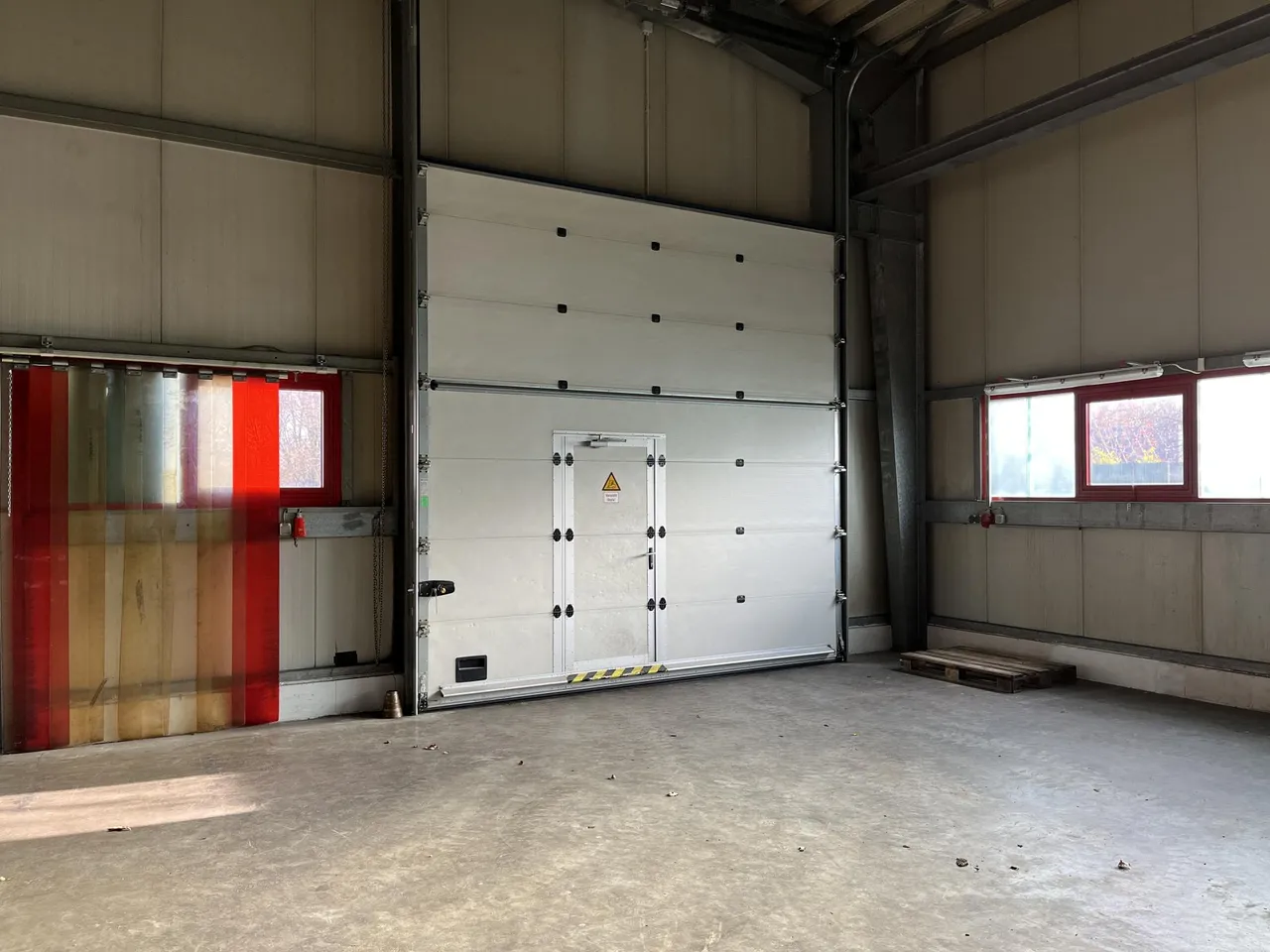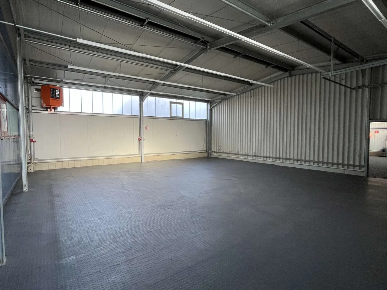 Durch einen breiten Durchgang erreicht man die zweite Halle. Beide Hallen sind auch von außen über ca. 4 m breite Sektionaltore anzufahren.